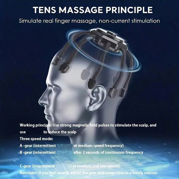 Our massager mimics gentle finger movements, targeting pressure points to relax the scalp, reducing stress and tension effectively.